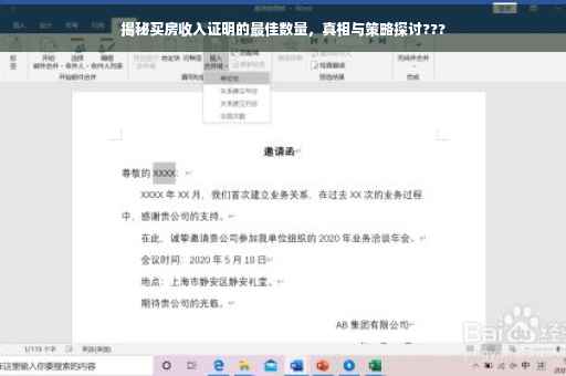 摘要:买房收入证明需要开具几张,背后涉及真相与策略问题。具体开几张合适,需根据购房者的实际情况和贷款机构的要求而定。本文将揭示收入证明的重要性,以及开具合理数量的收入证明的策略和注意事项,帮助购房者更好地应对购房过程中的相关问题。