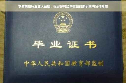 摘要:农村养殖行业正成为乡村经济繁荣的新引擎。通过撰写农村养殖行业收入证明,可以展示该行业对乡村经济的贡献。撰写时,应重点介绍养殖户的收入状况、养殖规模、经济效益以及对当地经济的带动作用。通过明确的数据和事实,证明农村养殖行业在促进乡村经济发展、提高农民收入方面的重要作用。