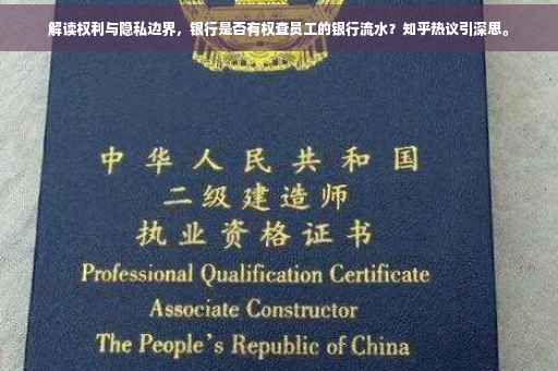 在探讨银行是否有权查员工银行流水的问题时,我们必须考虑到相关法律法规的约束,在我国,个人隐私保护、金融信息安全等法律法规对于银行查询员工银行流水有明确的限制和规定,银行在查询员工银行流水时,必须遵循法定程序,并获得相关部门的授权。