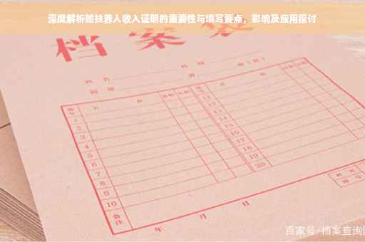 赡养扶助人员在当今社会扮演着愈发重要的角色,他们负责对老年人和未成年人进行抚养和照顾,在这一过程中,赡养扶助人员的收入证明显得至关重要,本文将详细阐述赡养扶助人员收入证明的作用、内容、开具方法,以及其在实际应用中的影响。
