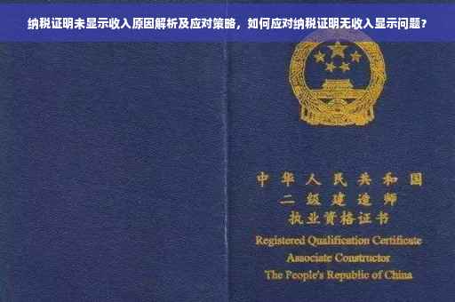 摘要:纳税证明未显示收入,可能是由于多种原因造成,如报税记录不完整、税务处理延迟等。面对这种情况,个人或企业应首先核对报税记录,确认是否已正确申报收入。联系税务部门了解具体情况,查明原因。若是税务处理延迟,耐心等待并关注税务部门通知。寻求税务专业人士的帮助也是解决问题的重要途径。确保个人或企业的合法权益不受影响,及时采取措施应对。