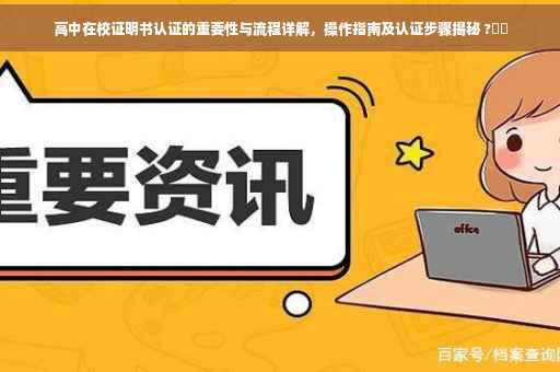 本文关于“高中在校证明书认证的重要性及其流程解析”的详细内容,旨在为广大高中生及家长提供帮助和指导。