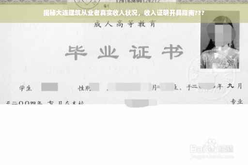 摘要:大连建筑从业者收入证明揭秘行业真实收入状况。想要获取收入证明,可以通过向所在单位的人力资源部门申请,提供相关个人信息及需要证明的时间段。收入证明内容包括个人职位、工作时间、收入情况等详细信息。通过这份证明,可以了解建筑行业在大连地区的薪资水平及行业内的真实收入状况。