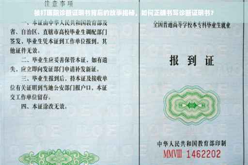 摘要:本文讲述了关于被打后医院诊断证明书的背后故事。文章将介绍如何撰写一份准确的诊断证明书,包括患者的伤情描述、医生的诊断意见以及治疗建议等内容。文章还将探讨诊断证明书的重要性,以及在遭受暴力伤害后应如何正确处理,以维护自身权益。