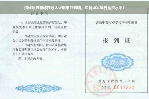 摘要:本文将探讨收入证明中的职务职称如何影响薪资水平,并介绍如何正确填写职务职称。通过深入了解职务职称的含义和重要性,读者将明白不同职称对薪资产生的具体影响。本文旨在为职场人士提供指导,帮助他们在填写收入证明时合理选择和填写职务职称,以更好地反映自身价值和薪资水平。