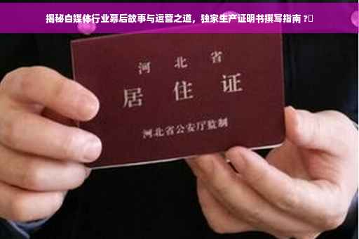 随着互联网的普及和社交媒体的飞速发展,自媒体行业逐渐崭露头角,吸引了越来越多的创作者投身其中,作为一名自媒体作者,我将为大家带来一份独家生产证明书,揭示自媒体行业的幕后故事与运营之道。