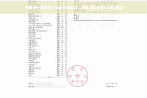 摘要:本文将详细介绍按揭银行额度收入证明的相关内容。通过收入证明,银行能够评估贷款申请人的还款能力,从而决定贷款额度。本文将解释收入证明的重要性,如何准备和提交收入证明,以及如何通过优化收入证明来提高贷款额度。让读者了解在申请按揭贷款过程中,如何更有效地利用收入证明获得更高的贷款额度。