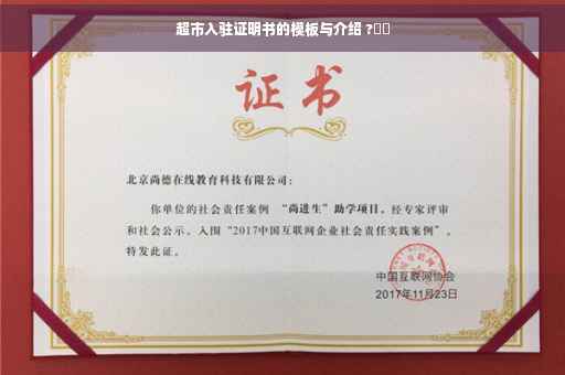 随着消费市场的不断升级和零售行业的飞速发展,越来越多的超市品牌开始在全国范围内扩张,超市入驻证明书作为超市成功入驻某个商业区域的重要凭证,对于超市品牌的发展具有举足轻重的意义,本文将详细介绍超市入驻证明书的撰写要点,帮助读者了解如何撰写一份规范、正式的超市入驻证明书。