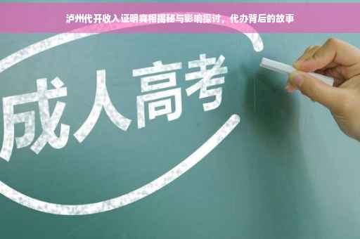 随着社会的快速发展,收入证明在各个领域扮演着越来越重要的角色,无论是贷款购房、申请信用卡,还是求职入职,收入证明都是验证个人经济实力的关键材料,有时由于各种原因,一些人无法提供正规的收入证明,这时,这样的服务便应运而生,本文将深入探讨泸州地区代开收入证明的现象,揭示其背后的真相、风险及影响。