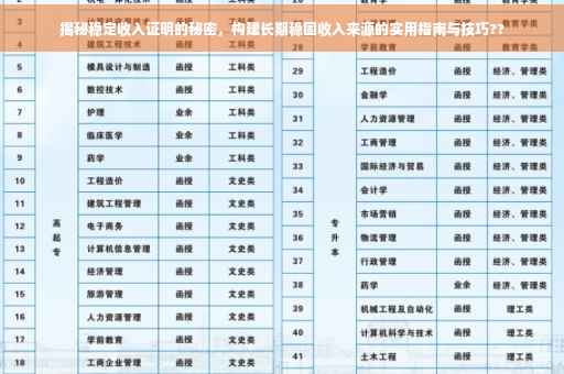 摘要:本文将揭示稳定收入证明背后的秘密,探讨如何构建长期稳定的收入来源。通过有效的策略和技巧,我们将探讨如何撰写具有说服力的稳定收入证明,帮助读者实现财务安全和稳定的经济来源。本文将提供实用建议和指导,助力读者迈向成功之路。