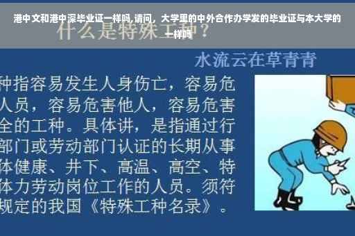 不能一概而论,有的是一样的,有的不一样的。如果是某个高校与某外国大学联合设立的独立学院那么毕业证跟本大学的毕业证不一样,比方说北京师范大学与香港浸会大学的珠海联合学院毕业证就不一样,如果不是独立学院应该是一样的,如广西大学的中外合作专业,东北财经大学的中外合作专业。