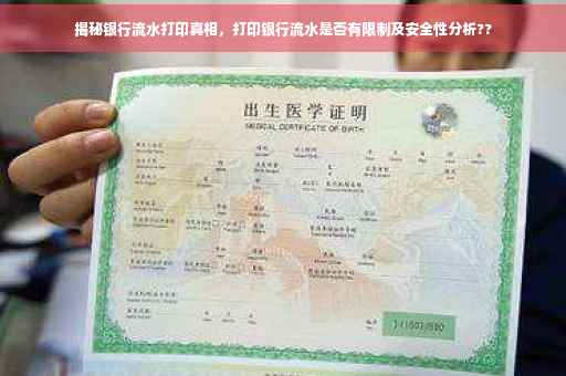 摘要:银行流水打印存在限制,但安全性有保障。客户在打印银行流水时,需遵守银行规定,如提供身份证明和具体时间段等。银行会保护客户隐私和交易安全,流水信息严格保密。客户需了解真相,谨慎操作,确保安全。