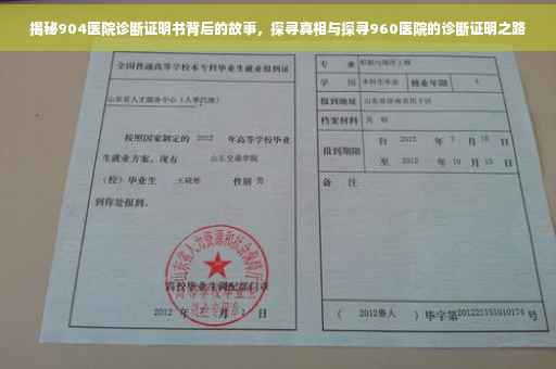 摘要:本文将揭示关于904医院诊断证明书背后的故事,同时提及960医院诊断证明的相关内容。通过深入了解,我们将探索这些诊断证明书背后的过程、涉及的问题以及可能存在的争议点。读者将能够了解这些医院诊断证明的重要性及其在实际应用中的影响。
