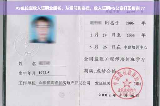 摘要:本文将详细介绍PS单位章收入证明的相关内容,包括收入证明的概念、作用以及PS公章打印的注意事项。文章旨在帮助读者了解如何正确获取和使用收入证明,以确保个人权益和信用。通过本文的阅读,读者将能够了解收入证明的重要性和正确使用方式。