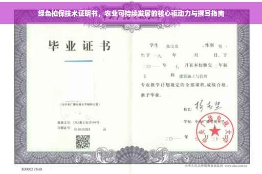 摘要:绿色植保技术证明书是农业可持续发展的重要证明,其关键力量在于推动农业生态平衡和环境保护。该证明书旨在提高农业生产效率和质量,同时保护生态环境和农作物健康。通过采用绿色植保技术,农业可持续发展得以更好地实现,为农民和消费者带来长期利益。撰写绿色植保技术证明书需要详细说明技术应用情况、实施效果及对环境的影响,以确保其真实有效。