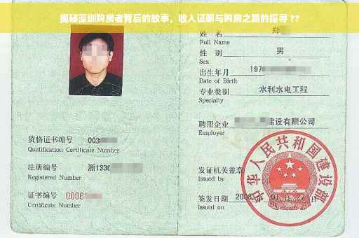 摘要:深圳购房者收入证明揭示了个体背后的故事。购房者在深圳购房时,需要提供收入证明以证明其购房能力。收入证明可以通过雇主开具,包括工资、奖金、津贴等收入情况。购房者还可以提供银行流水等证明文件。本文将介绍深圳购房个体收入证明的重要性及其开具方式,帮助购房者顺利购房并揭开背后的故事。
