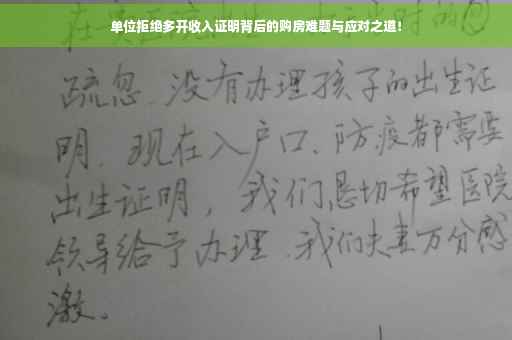 近年来,不少职场人士反映,在提交收入证明时遭遇困难,许多单位以各种理由拒绝为员工多开收入证明,这一现象在各行各业均有所体现,特别是在大型企业、金融机构等单位尤为突出,员工在购房、贷款、签证等重要场合,因单位不愿提供足够的收入证明而陷入困境。