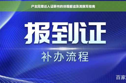 摘要:,,本文详细解读了户主同意迁入证明书的相关内容,介绍了如何撰写该证明书。文章指出,户主同意迁入证明书是证明迁入者获得户主同意迁入的重要文件,需要包含户主的基本信息、同意迁入的理由、迁入者的基本信息等内容。文章强调了撰写证明书时需要注意的事项,包括确保信息真实准确、格式规范等。本文旨在帮助读者了解并正确撰写户主同意迁入证明书。