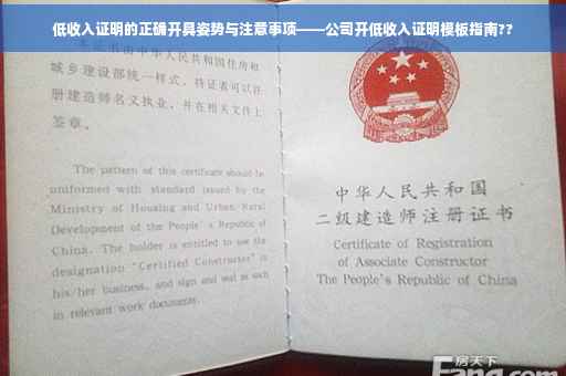 摘要:本文将介绍公司开具低收入证明的正确方法和注意事项。通过了解相关政策和规定,公司将能够遵循正确的格式和语言要求来出具低收入证明。本文将提供一份低收入证明模板,以帮助公司快速准确地出具证明。在开具低收入证明时,公司需要注意核实信息的准确性,遵循相关法律法规,确保证明的真实性和有效性。通过阅读本文,公司将能够更好地理解和应对低收入证明的开具问题。