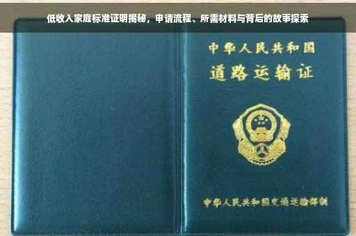 摘要:本文将介绍低收入家庭标准证明的申请流程、所需材料以及背后的故事。想要获得低收入家庭标准证明,需要了解相关政策和申请流程,包括准备必要的申请材料。本文将帮助您了解如何申请低收入家庭标准证明,并揭示背后的故事,让您更深入地了解低收入家庭的生活状况。