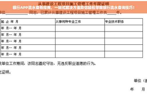 银行APP作为我们日常生活中的重要金融工具,提供了查看银行流水的便捷渠道,通过简单的步骤,我们就可以随时随地查看自己的银行流水,实时掌握财务动态,在使用过程中,我们需要注意保护个人信息、遵守银行政策,并确保手机应用商店和银行APP的最新版本,让我们一起享受科技带来的便利,轻松管理财务吧!