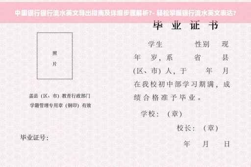 摘要:本篇指南旨在详细解析中国银行导出银行流水的步骤及其英文表达。通过简洁明了的说明,让读者了解如何操作中国银行系统以导出银行流水,并附有相关的英文表述,以便更广泛地与国际读者分享。详细步骤解析确保读者能够顺利完成操作。