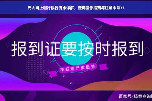 随着互联网技术的不断发展,网上银行已成为人们日常生活中不可或缺的一部分,光大银行作为国内领先的金融机构之一,其网上银行服务备受广大用户青睐,本文将详细介绍光大网上银行流水查询方法、注意事项及相关建议,帮助用户更好地管理个人财务。