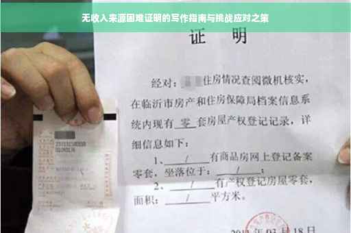 摘要:,,本文将探讨无收入来源困难证明的撰写问题,介绍所面临的挑战及应对之策。对于无法提供收入证明的人群,这一证明的申请过程可能更为困难。本文将提供一些建议,帮助申请者更准确地描述自身经济状况,同时提供可能的解决方案和应对策略。通过本文,读者可以了解到如何应对无收入来源困难证明的挑战。
