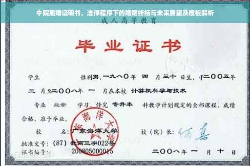 摘要:本文介绍了中院离婚证明书的重要性,它是在法律程序下婚姻终结的正式文件。文章还探讨了离婚后的未来展望,包括离婚证明书模板的使用。通过法律途径结束婚姻关系的双方应了解离婚证明书的作用,并为其未来生活做好准备。