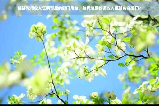 随着社会的进步和经济的发展,教育行业的关注度日益提高,教师的收入问题也成为了公众关注的焦点之一,教师收入证明作为衡量教师收入水平的重要依据,背后所涉及到的部门及其职能更是值得我们深入了解,本文将为您揭开教师收入证明所在部门的神秘面纱,带您走进这个看似普通实则重要的部门。