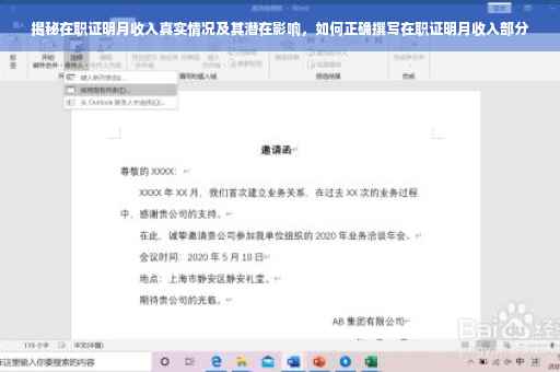 在职证明所列月收入是职场人士经济能力的重要体现,对个人信用评估、贷款申请、租房等方面具有重要影响,本文旨在揭示在职证明所列月收入的真实情况与潜在影响,提醒广大职场人士提高法律意识,谨慎对待在职证明,积累信用,为个人的职业发展和生活质量提供保障。