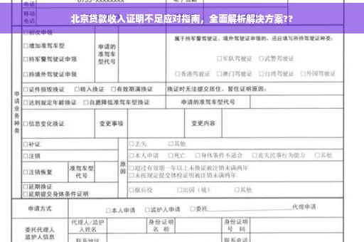 摘要:面对北京贷款收入证明不足的问题,不必过于担心。可以通过提高收入证明的真实性、提供其他财务证明、增加担保人等方式解决难题。咨询专业贷款顾问或银行工作人员,了解贷款政策和要求,也是顺利获得贷款的关键。这份全面的指南为你提供应对方案,解决北京贷款收入证明不够的困扰。