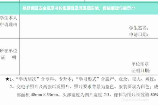 在当今社会,铁路交通作为国民经济的大动脉,其安全性问题不仅关系到国家的经济发展,更直接关系到人民群众的生命财产安全,铁路保证安全证明书作为铁路安全管理体系的重要组成部分,对于保障铁路运输安全、维护社会稳定具有不可替代的作用,本文将深入探讨铁路保证安全证明书的作用、具体内容及其深远影响。