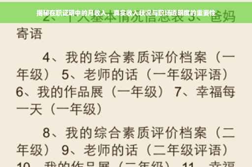 在职证明是职场人士证明自己工作身份、职位及收入情况的重要文件,所列月收入是反映个人价值、生活水平及经济能力的重要指标,本文将围绕在职证明所列月收入展开讨论,揭示真实收入状况对职场透明度的重要性,并探讨如何合理呈现个人收入情况。