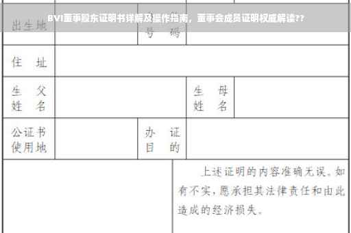 通过本文的介绍,读者能对BVI董事股东证明书有更深入的了解,并在实际操作中得以应用,解决一些常见的关于注册和维护的问题,希望对您在商业领域的发展提供帮助。