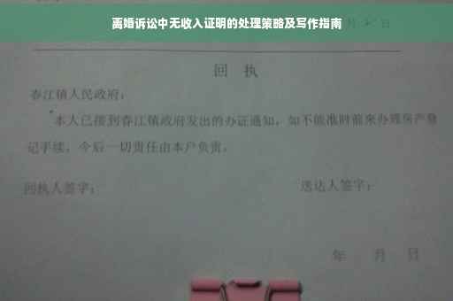 近年来,随着社会经济的发展和婚姻观念的转变,离婚现象逐渐增多,在离婚诉讼中,财产分割、抚养权和赡养费等问题备受关注,关于无收入证明的情况也逐渐浮出水面,本文将围绕这一主题展开讨论,为广大读者解析离婚诉讼中无收入证明的处理之道。