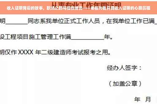这张收入证明不仅仅是一份简单的文件,它见证了我从职场小白到业务骨干的蜕变,每一个数字、每一次加薪,都是我辛勤付出的结果,是老板对我信任的体现,这份信任并非凭空而来,而是建立在我对工作的敬业态度、专业能力和职业道德之上。