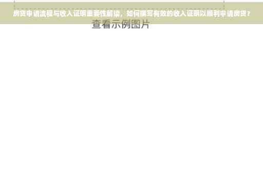 摘要:本文将解读房贷申请流程中收入证明的重要性,介绍收入证明的作用及其在申请房贷过程中的必要性。本文还将提供关于如何撰写收入证明的建议,帮助申请者顺利完成房贷申请。通过本文的指导,申请者可以更好地了解房贷申请流程,并顺利获得所需的贷款。??(字数约150字)