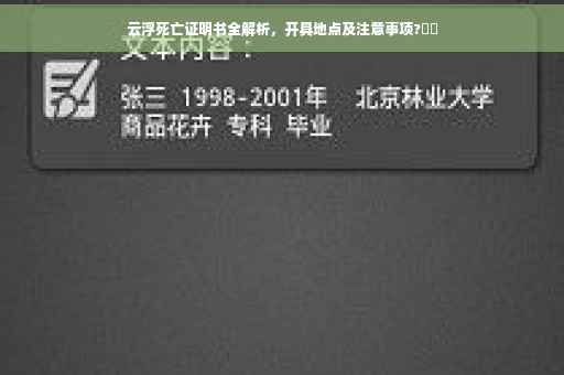 通过以上介绍,相信读者对云浮死亡证明书有了更加详细的了解,在办理过程中,如有任何疑问,读者可及时向医疗机构或公安机关咨询,以确保办理过程的顺利进行,我们也要关注生命教育,让更多人了解生死相关的知识,珍惜生命,关爱身边的人。