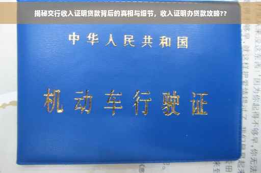 随着金融市场的繁荣和人们生活水平的提高,贷款需求日益增长,为满足市场需求,各大银行纷纷推出多样化的贷款产品,交通银行推出的收入证明贷款因其实用性和便捷性备受瞩目,本文将全面剖析交行收入证明贷款的背后真相与细节,帮助大家更好地了解这一贷款产品。