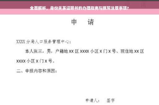 在日常生活和工作中,我们有时会遇到需要证明身份关系的情况,无论是办理法律事务、金融业务还是其他重要事务,身份关系证明书都是证明个人身份及与他人关系的重要文件,本文将详细介绍如何办理身份关系证明书,以及在办理过程中需要注意的事项。