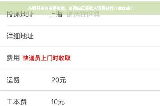实用指南:如何开具收入证明?从零起步??。本指南详细介绍了从零开始如何获取收入证明材料。首先了解为何需要收入证明,然后明确准备材料清单,包括身份证明、工作证明等。按照步骤操作,如联系所在单位人事部门、填写收入证明表格等。注意事项提醒,确保信息准确无误。本指南简洁明了,适合各类人群参考使用。