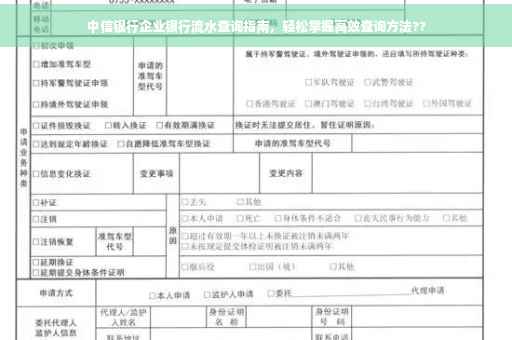 随着企业业务的快速发展,管理资金流水变得日益重要,作为中信银行的客户,您可能经常需要查询企业银行流水以了解账户状况,本文将详细介绍中信银行企业银行流水的查询方法,帮助您轻松掌握查询技巧,实现高效资金管理。