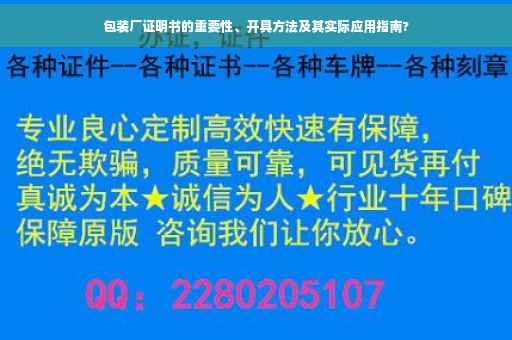 摘要:包装厂证明书对于确保产品质量和安全性至关重要,其重要性不容忽视。实际应用中,包装厂证明书能够证明产品符合相关标准和规定,从而保障消费者的权益。开具包装厂证明书需要遵循一定的程序,包括填写申请表格、提供相关资质证明、进行产品检验等步骤。通过获得有效的包装厂证明书,企业可以提升产品信誉和市场竞争力。