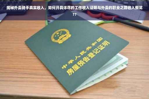 摘要:本文将为你揭示外卖骑手的真实收入状况,提供一份详尽的工作收入证明。通过深入了解外卖骑手的工作性质、收入构成和收入水平,帮助你对这一职业有更全面的认识。本文还将介绍如何开具外卖骑手的工作收入证明,包括所需材料和步骤等,为你提供实用的指导。,,字数控制在约150字左右,简洁明了地概括了文章的主要内容。