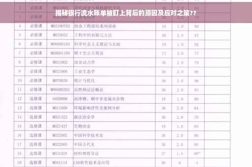 银行流水账单被银行盯上并非罕见现象,个人和企业都应保持警惕,为确保流水账单的合规性和透明度,个人和企业应遵守相关法律法规,加强财务管理和风险防范意识,通过保持资金流动透明、积极配合银行调查、合法合规经营、多元化资金来源和合理规划资金使用等措施,可以有效应对银行流水账单被盯上带来的困扰,建议个人和企业定期自查流水账单,及时发现并解决问题,以确保金融活动的正常进行。