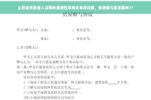 在当今社会,随着房价的不断上涨,越来越多的人选择通过公积金贷款购买房屋,而在申请公积金贷款时,收入证明是不可或缺的一环,本文将详细解析公积金贷款收入证明的重要性,并探讨相关的注意事项,帮助读者更好地了解公积金贷款申请过程中的收入证明要求。