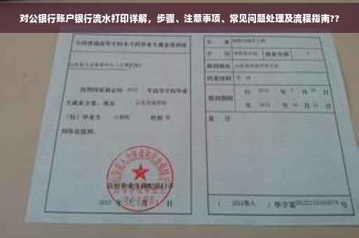 摘要:,,本文详细介绍了对公银行账户银行流水的打印流程,包括步骤、注意事项以及常见问题处理。首先介绍了打印银行流水的必要性,然后详细阐述了从准备材料到操作完成的整个过程。注意事项包括确保账户信息准确无误、打印时间的选择等。针对可能出现的常见问题,如打印不清晰、流水信息不全等,提供了相应的解决方案。本文旨在帮助读者更好地了解对公银行账户银行流水打印流程,提高工作效率。