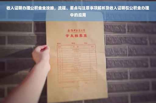 本文是关于收入证明办理公积金的全攻略,详细介绍了办理公积金的流程、要点及注意事项。本文将指导您如何使用收入证明来办理公积金,包括必要的步骤和需要注意的关键点,以帮助您顺利完成公积金申请。摘要字数控制在约100-200字之间。