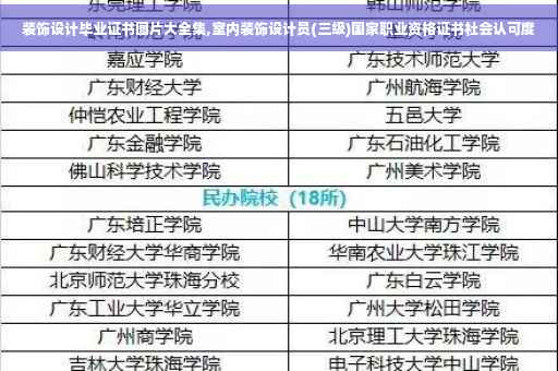 2、中国室内装饰协会(英文简称CIDA)颁发的室内设计师专业职业资格证书。